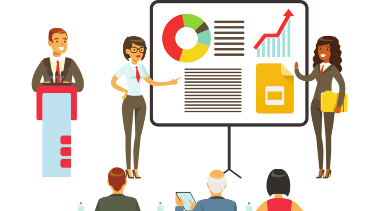 Google Slides lets you collaborate with others in your organization to create business presentations.